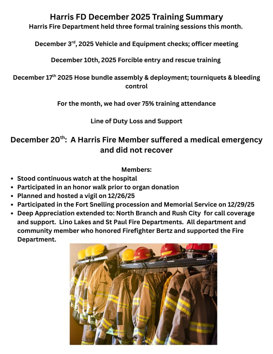 We at the City of Harris would like to keep our community updated on current events going on in the community. Please check back for Recent News about our city.